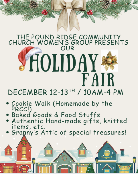 /It’s that time of year again and the Pound Ridge Community Church Women’s Group is gearing up for it’s Annual Holiday Fair & Cookie Walk! We would appreciate help with set-up, decorating, and onsite during the fair, so please head to our sign-up and see where you can led a hand! Click Here