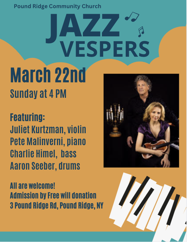 The Jazz Vespers at Pound Ridge Community Church is a unique and uplifting musical service that blends the soulful rhythms of jazz . Join us for an inspiring evening where talented musicians create an atmosphere of spiritual rejuvenation through dynamic jazz performances.